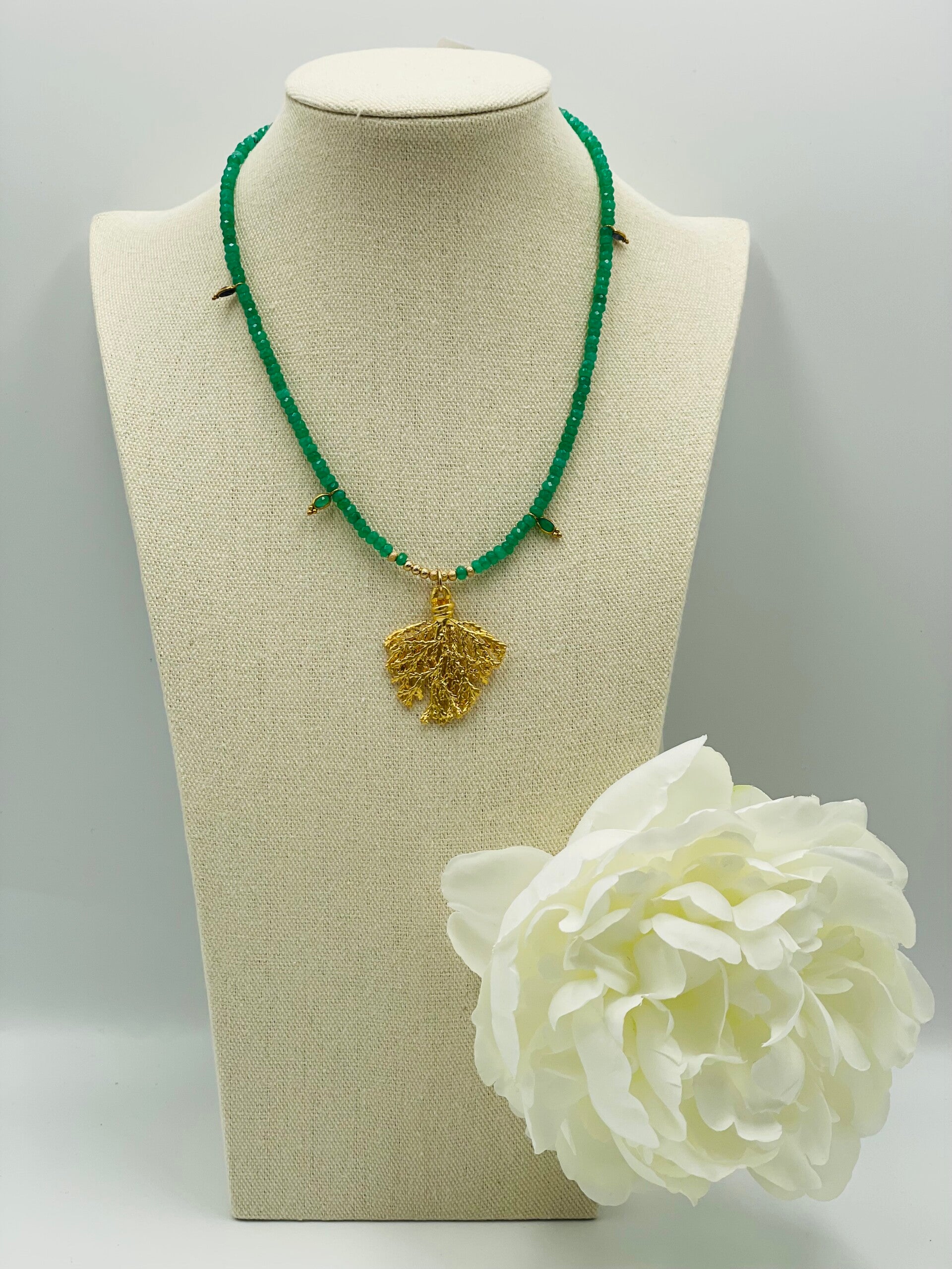 Collier de perles rondelles à facettes chrysoprase