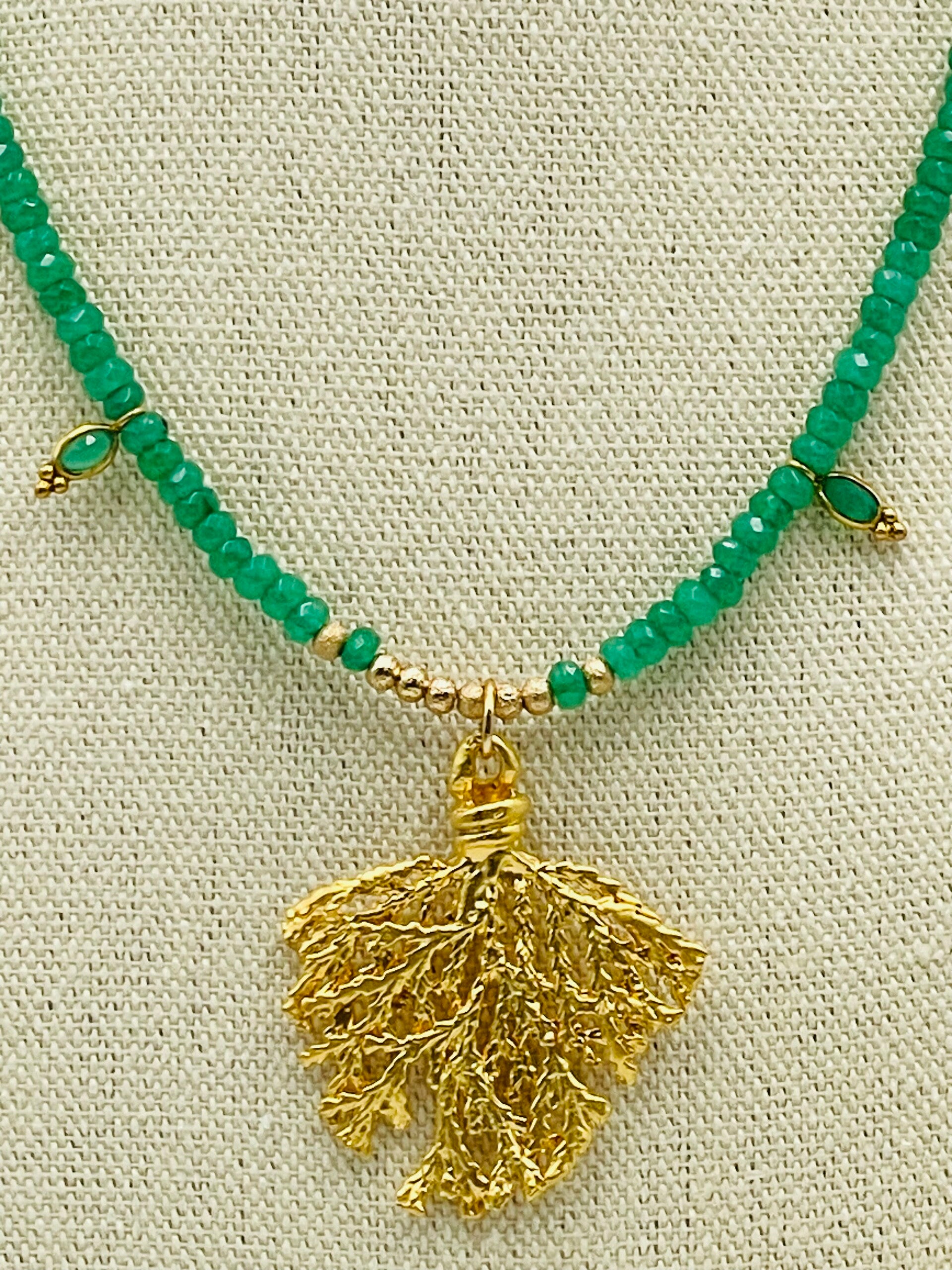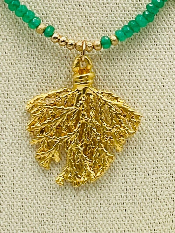 Pendentif feuille de conifère plaqué or mat