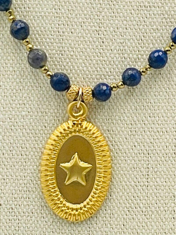 Collier perles à facettes lapis lazuli