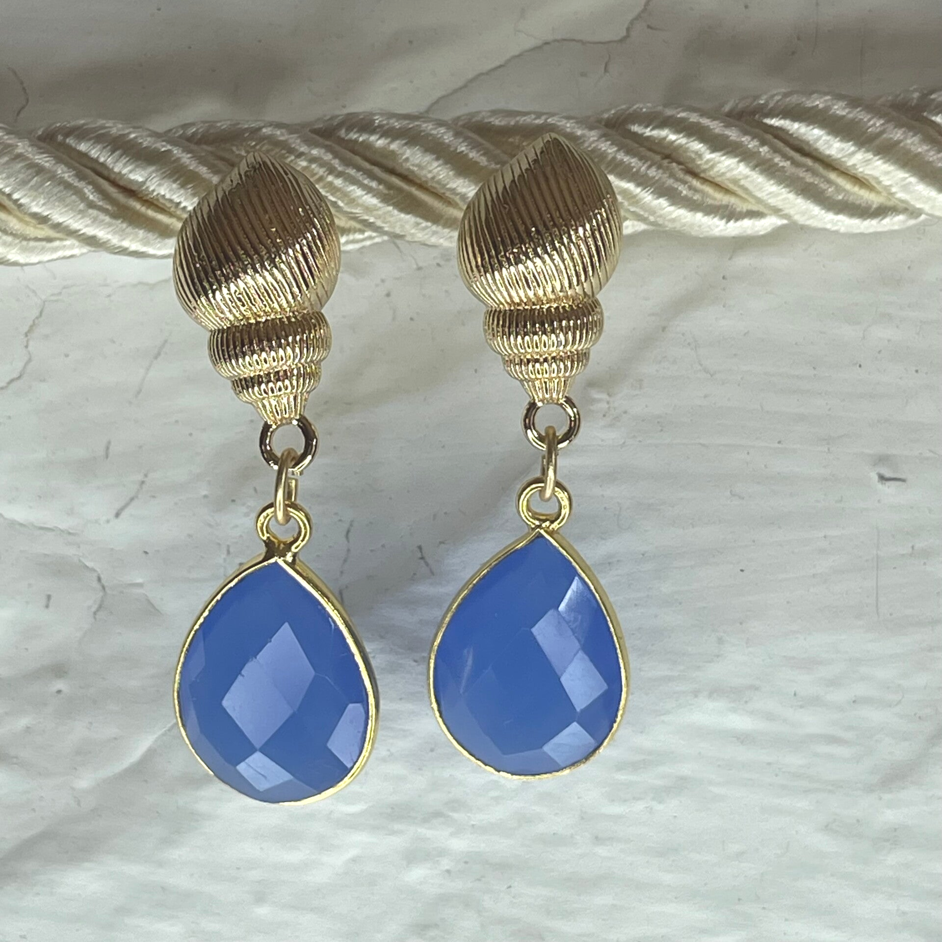 Boucle d'oreille coquillage or - calcédoine